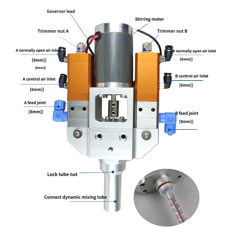 YI-61 Electrical Motor Mixing Pneumatic AB Glue Dispensing Valve, Metal, Micro-Adjustable with Suck-Back, Anti-Drip